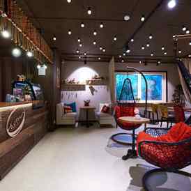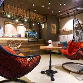 Излюбленными местами гостей являются диваны у барной стойки, стол около детской зоны, а также удобные большие подвесные кресла время в которых пролетает незаметно.